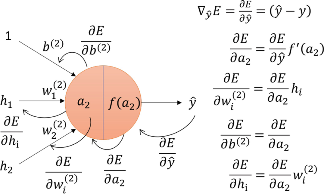 这个公式可以这样理解:“权重 W2 对最终误差 E 的影响”等于“预测值 ŷ 对误差 E 的影响”乘以“权重 W2 对预测值 ŷ 的影响”。